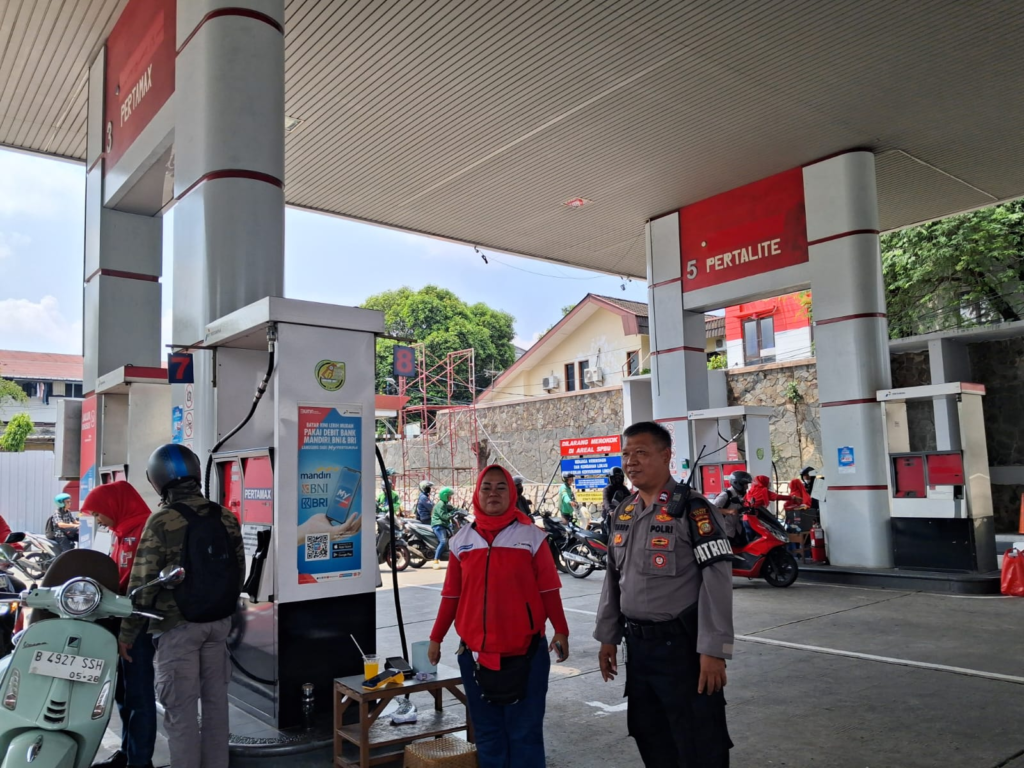 Personel Samapta Polsek Tebet Pantau SPBU di Tebet Barat, Situasi Tetap Kondusif Pasca Kenaikan BBM